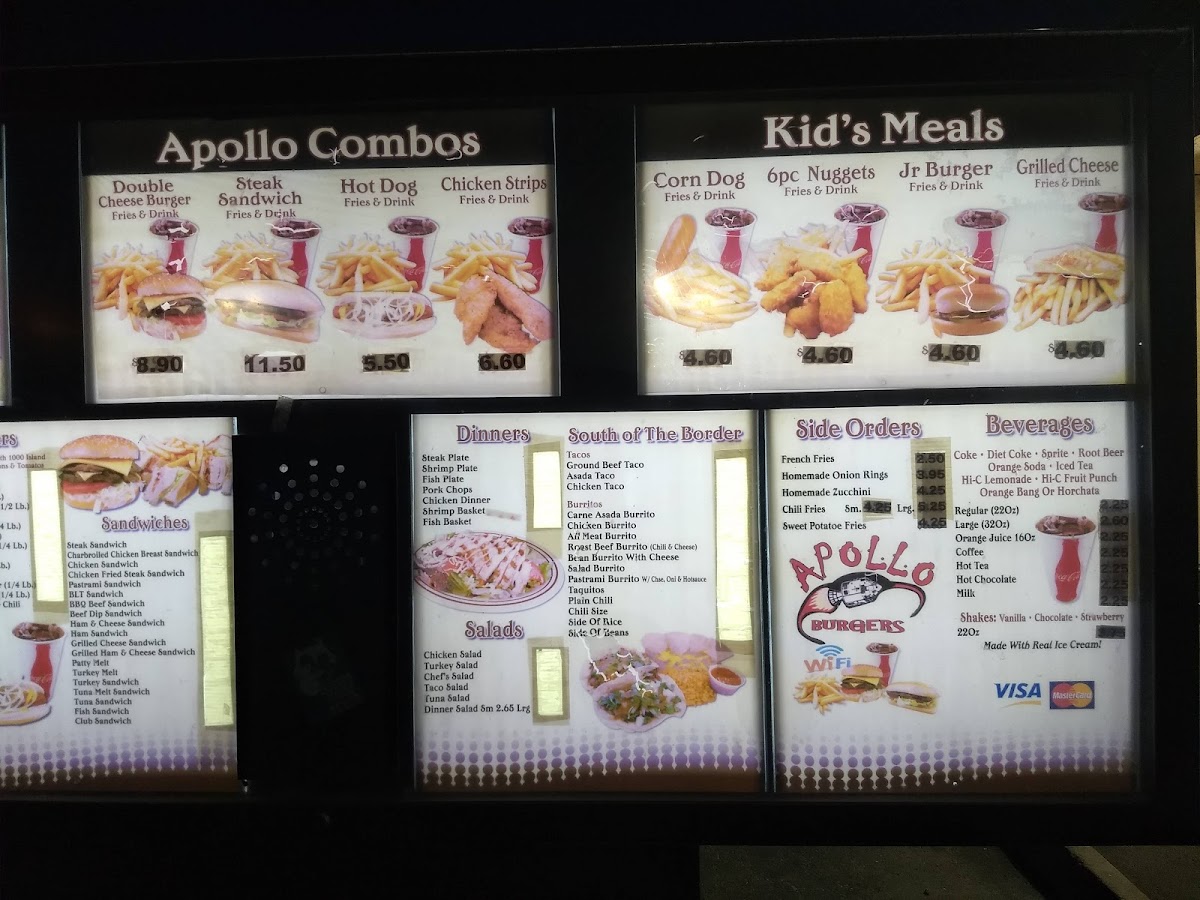 - Burgers and Sandwiches: This section includes classic hamburgers, cheeseburgers, bacon burgers, and specialty items such as pastrami and chicken sandwiches. Options are available individually or as part of combos, often served with fries.